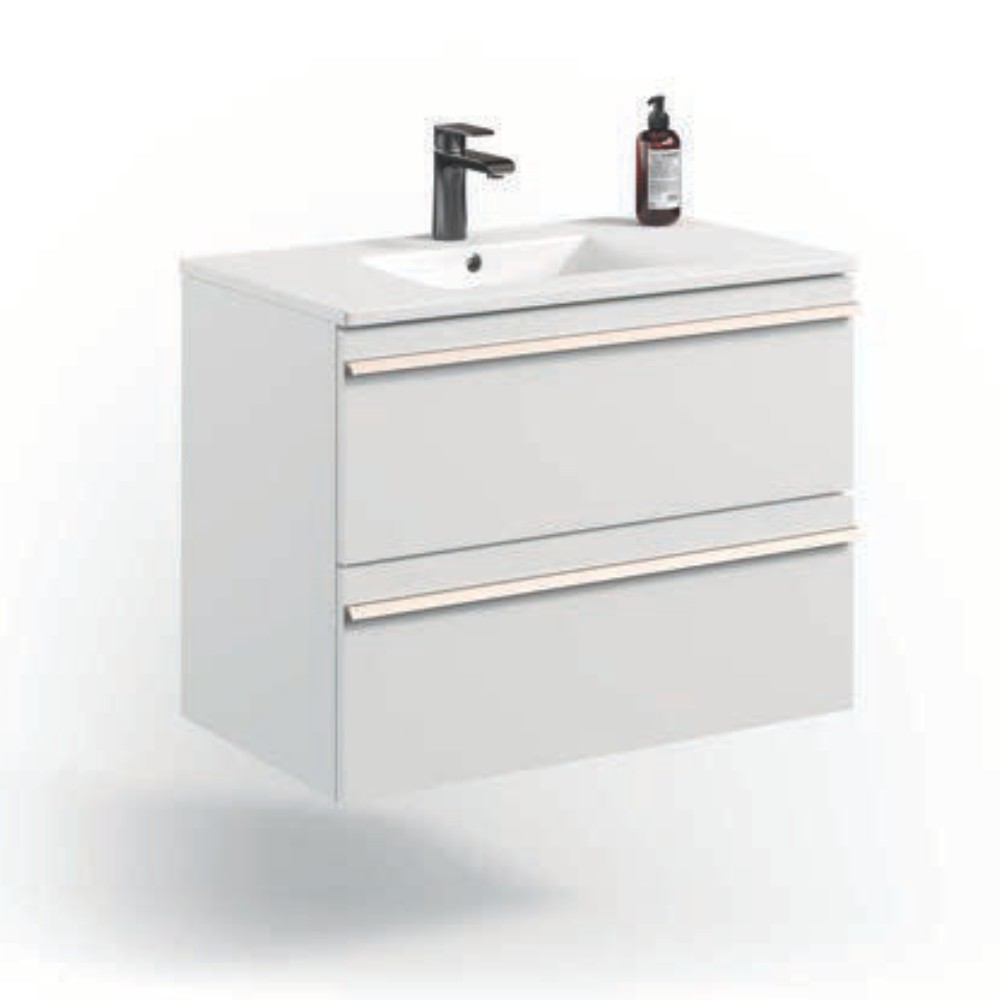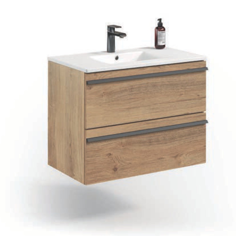Este mueble Aleydan combina diseño contemporáneo con máxima funcionalidad. Su instalación colgada libera el suelo y aporta sensación de espacio, mientras que dos cajones de extracción total con cierre amortiguado ofrecen comodidad y orden.