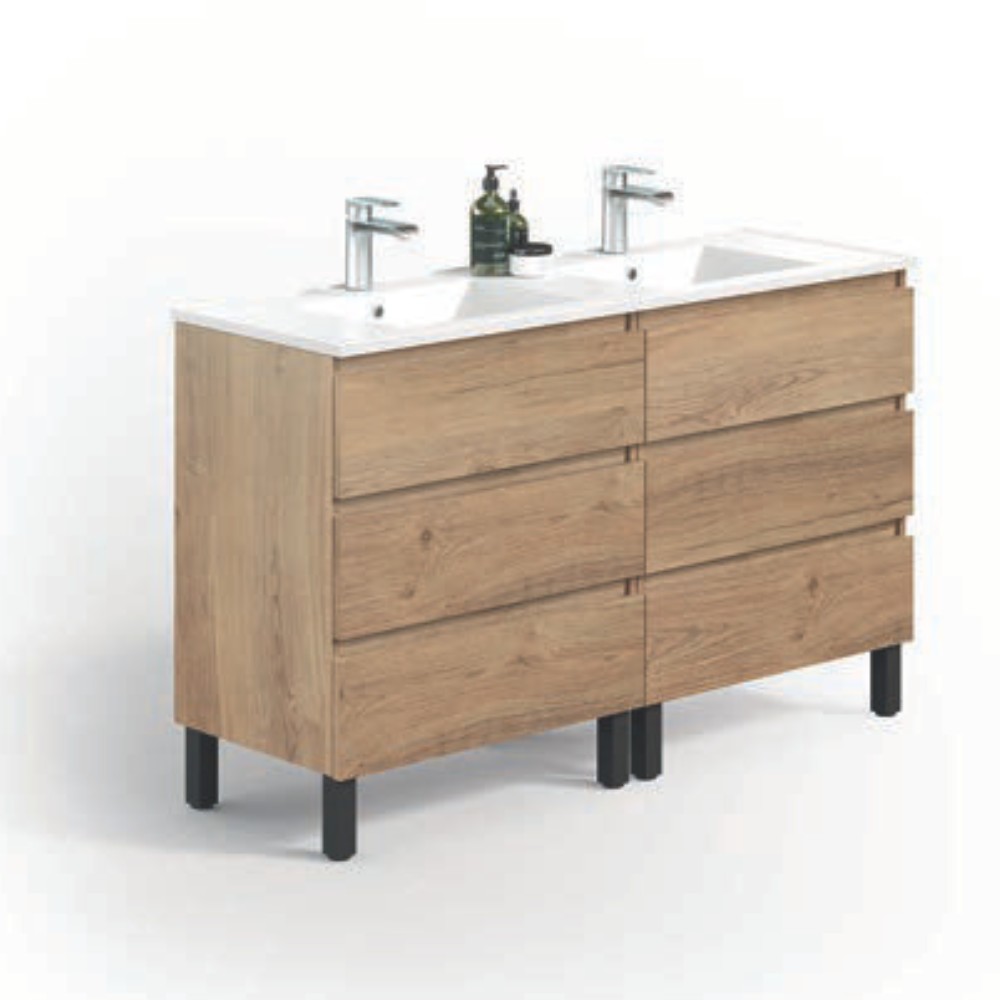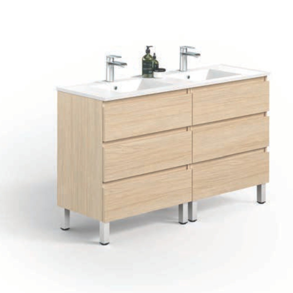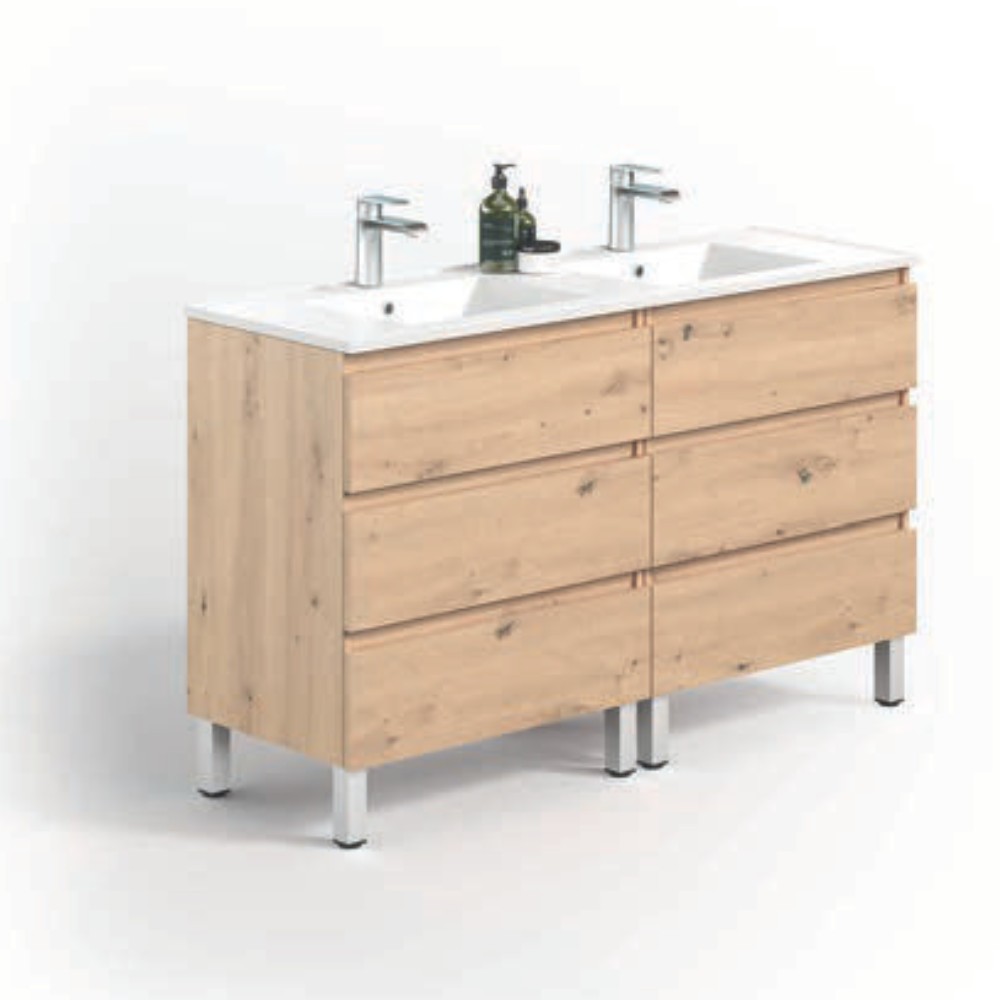 Mueble baño Kloe 3 cajones + 3 cajones con patas, de Campoaras