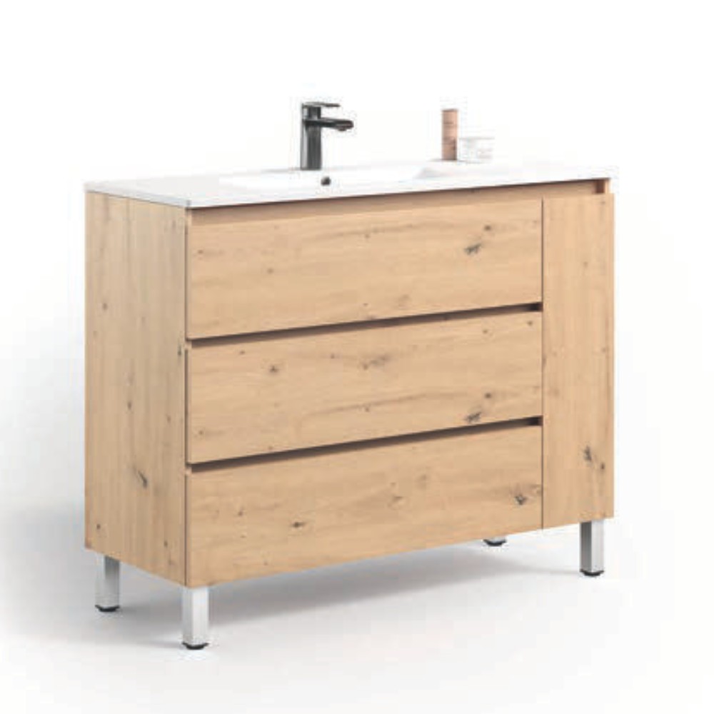 Mueble baño Kloe 3 cajones + Puerta Derecha con patas, de Campoaras