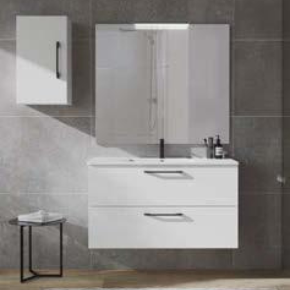 Su estructura colgada aporta luminosidad y sensación de amplitud, mientras que su acabado con lavabo cerámico integrado y encimera ligeramente sobresaliente proporciona una línea limpia y moderna.