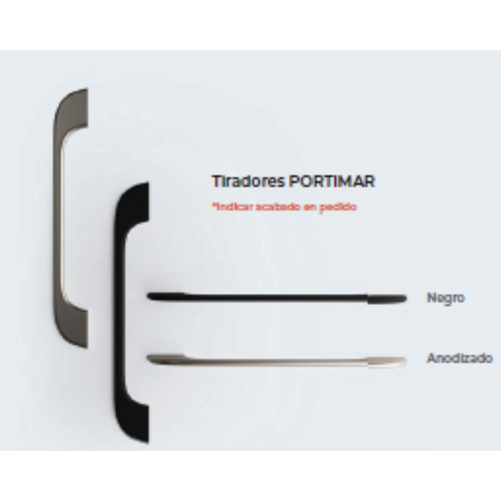 Tiradores: Metálico integrado y minimalista, color Negro o Anodizado