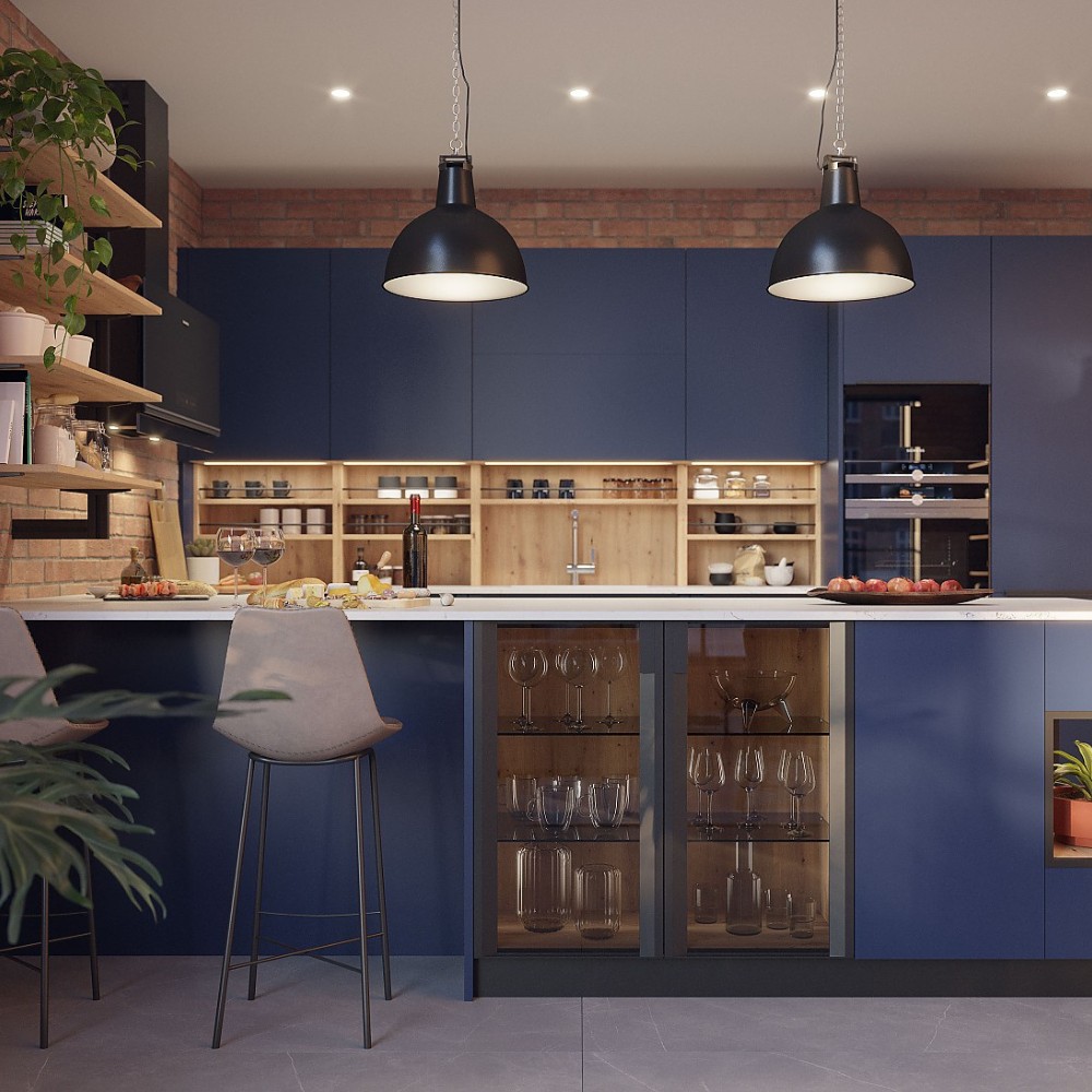 Su tono azul profundo aporta personalidad y carácter, creando un ambiente elegante y contemporáneo. Es una opción perfecta para quienes buscan romper con lo convencional y dar un toque distintivo a su cocina sin renunciar a la sofisticación ni a la funcionalidad.