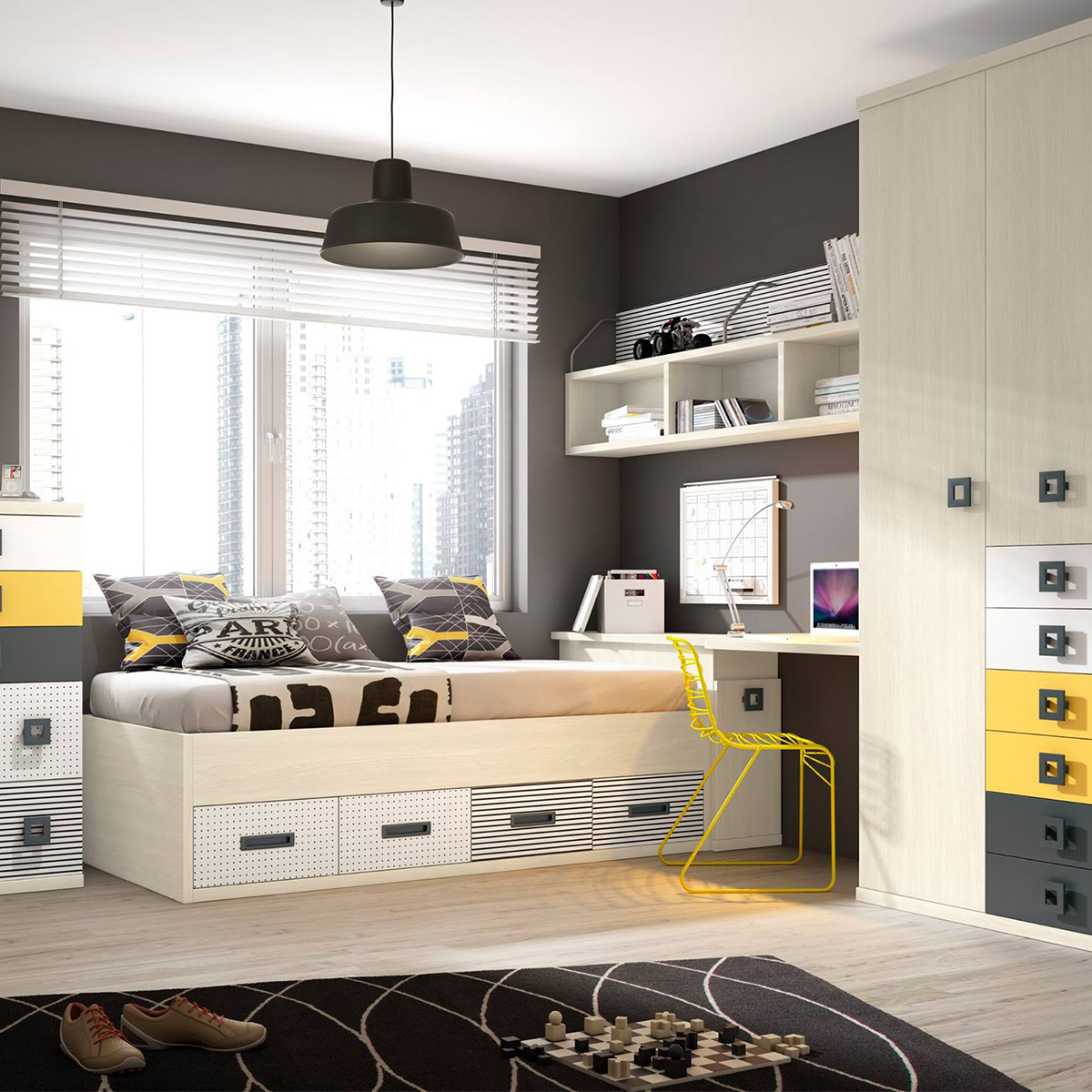 MES te propone diferentes ambientes para habitaciones juveniles e infantiles donde encontrarás diferentes conjuntos de muebles online para las habitaciones de los más jóvenes de la casa. Encontrarás una amplia variedad de camas, cabeceros, mesitas de noche, escritorios, armarios, estanterías, compactos y muebles auxiliares.