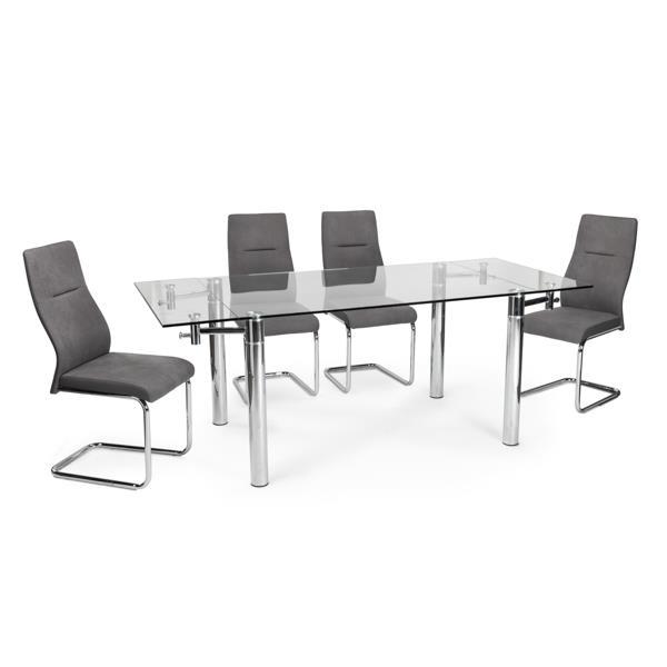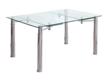 MESA COMEDOR tapa de cristal templado de 12 mm. y estruc. Met. acabada en cromo. Extensible cristal 30 en cada extremo. 140(200)x90x76 cm. (DESMONTADO)