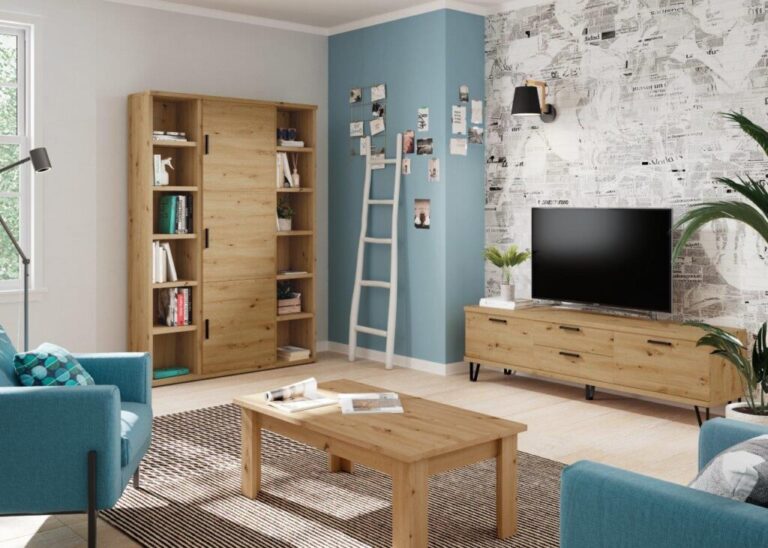 - Bajo estantería con trasera 40 x 134 x 35 cm. Roble natural