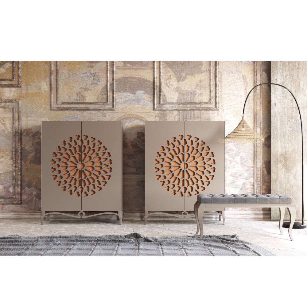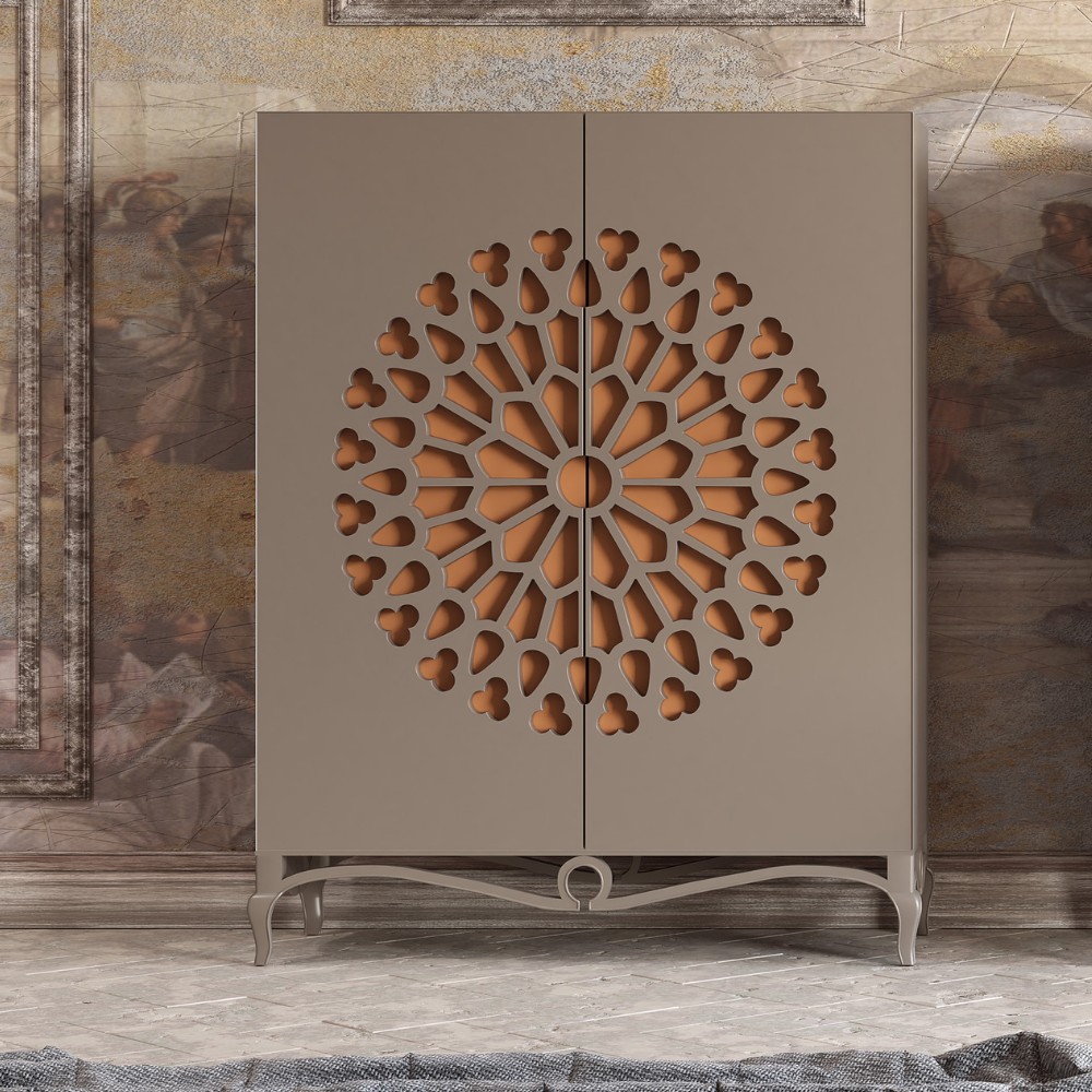 Inspirado en el equilibrio entre lo clásico y lo moderno, este vajillero destaca por sus líneas depuradas, acabados sofisticados y una cuidada selección de materiales de alta calidad. Su diseño aporta presencia visual sin sobrecargar el espacio, convirtiéndose en un elemento protagonista dentro de la composición del salón.